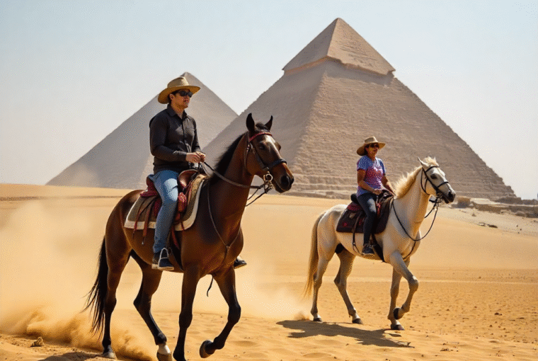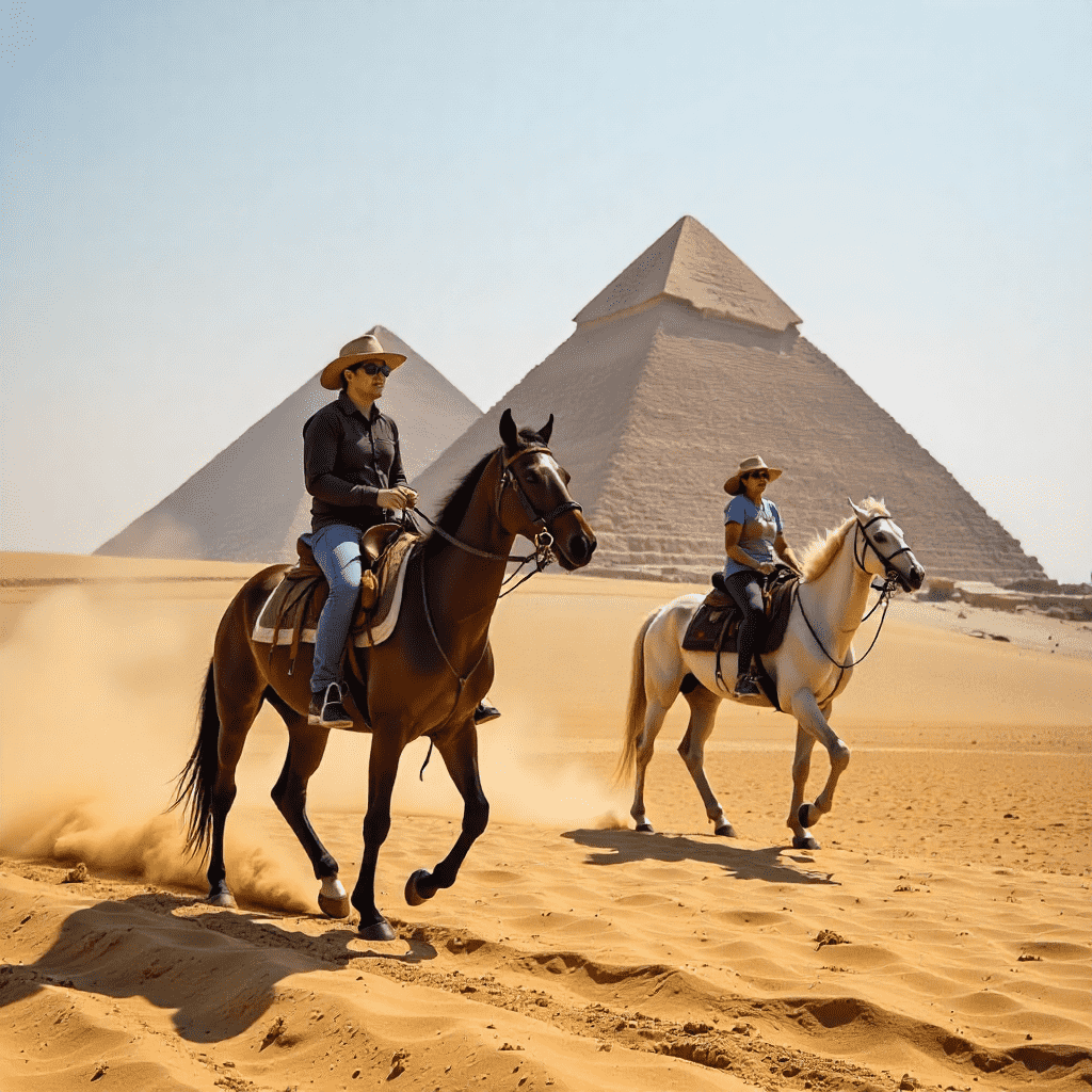 تجربة ركوب الخيل في صحراء الجيزة هي واحدة من أكثر التجارب إثارة وإلهامًا. يمكنك استكشاف المناظر الطبيعية الخلابة والتمتع برؤية الأهرامات العظيمة من منظور مختلف. تشعر بالحرية والهدوء بينما تتنقل عبر الكثبان الرملية، وتستمتع بالهدوء والسكينة التي توفرها هذه الرحلة. إنها تجربة لا تُنسى تأخذك في رحلة عبر الزمن وتجعلك تشعر بعبق التاريخ.